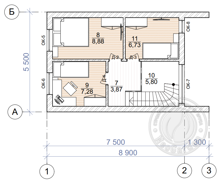 Проект двухэтажного дома Дом из бревна по проекту «Орландо»