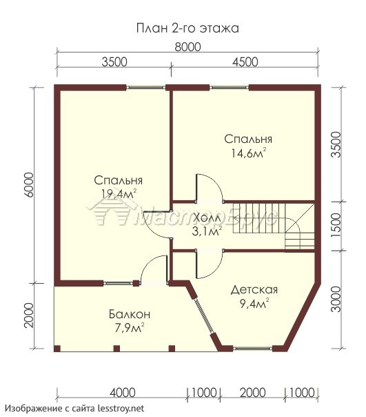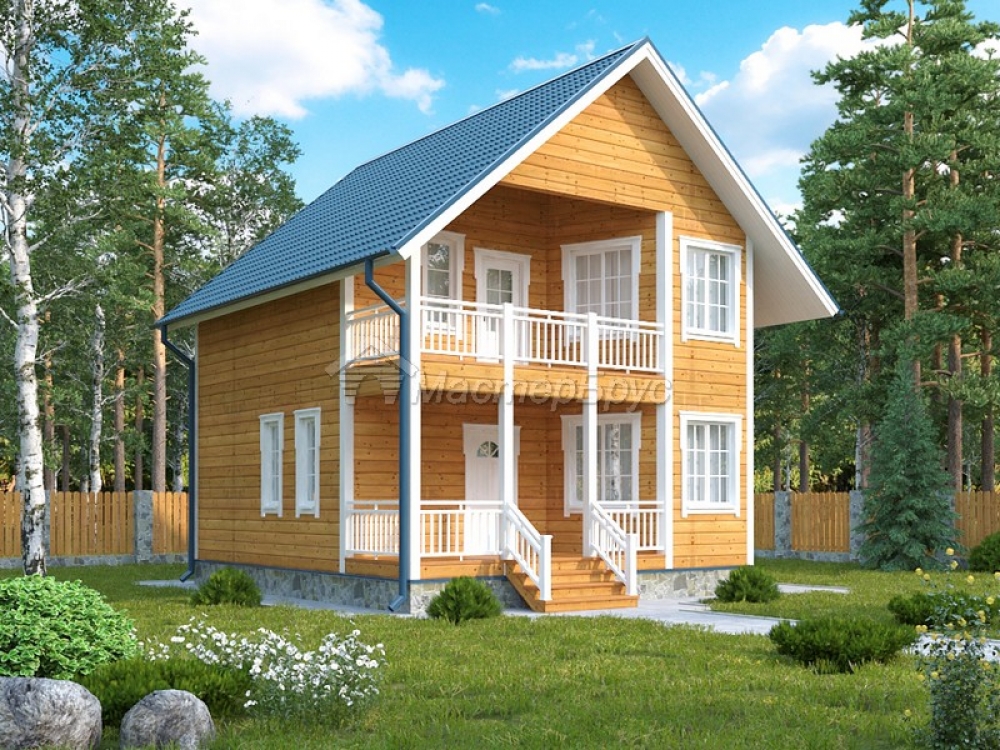 Проект двухэтажного дома БД-16 (8x8) с мансардой