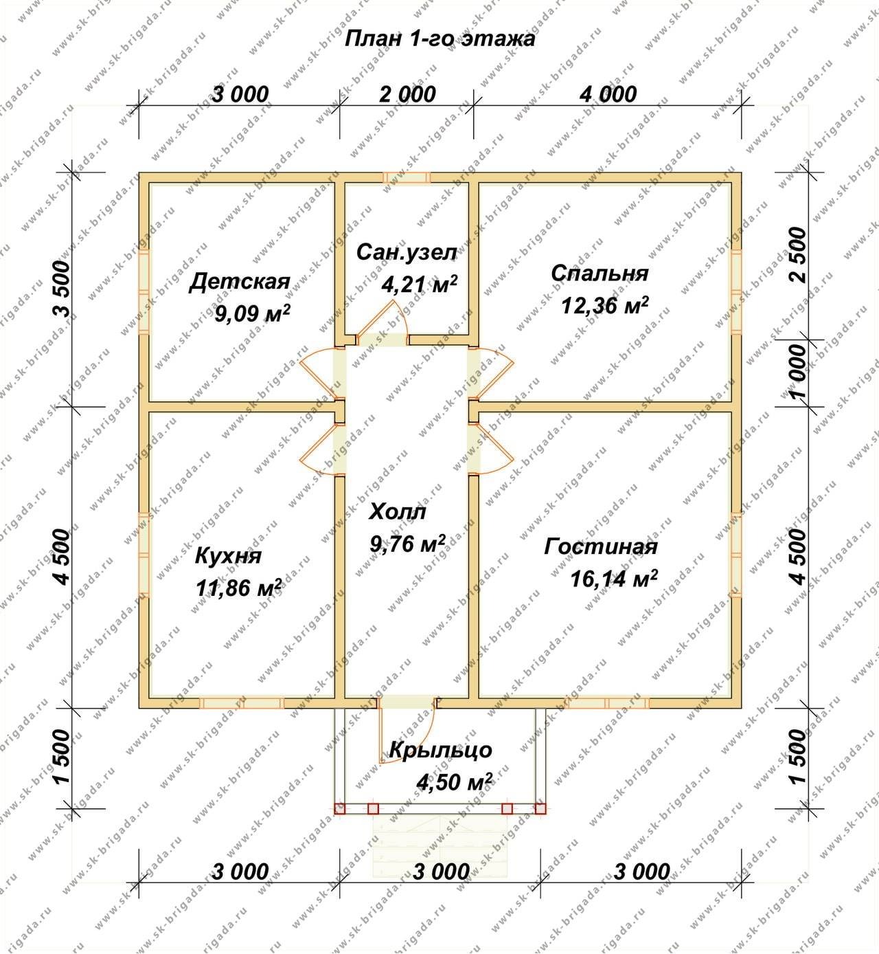 Проект одноэтажного дома Проект дома из бруса 8х9 - СОКРОВИЩНИЦА