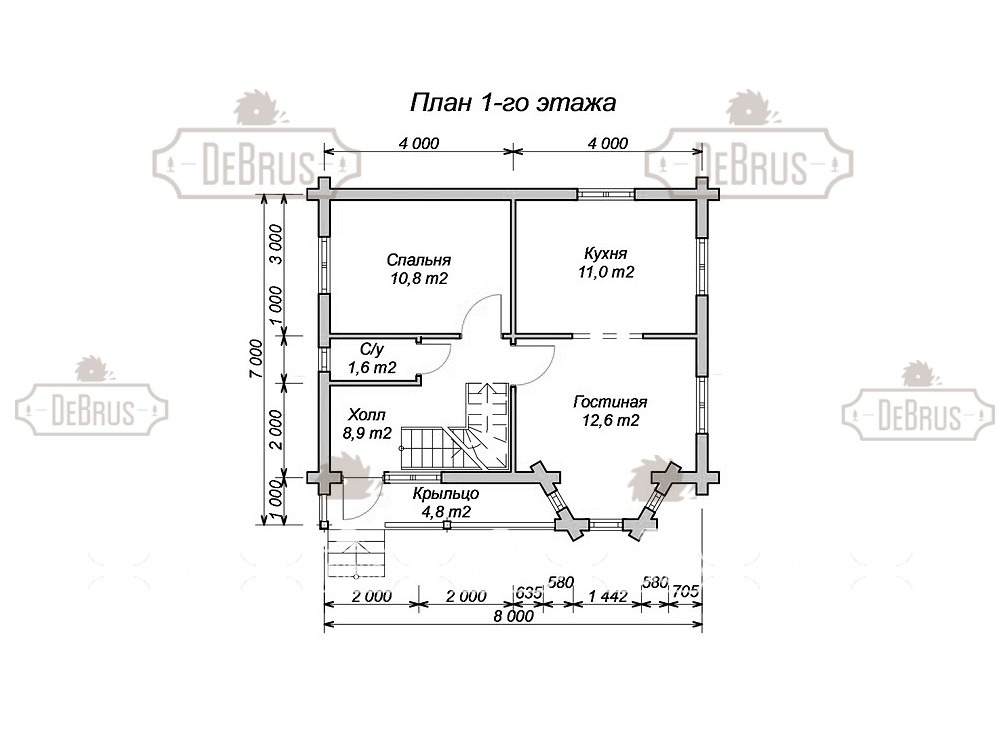 - Перегородки на 1 и 2-м эт. из бревна устанавливаются при сборке, каркасные при отделке