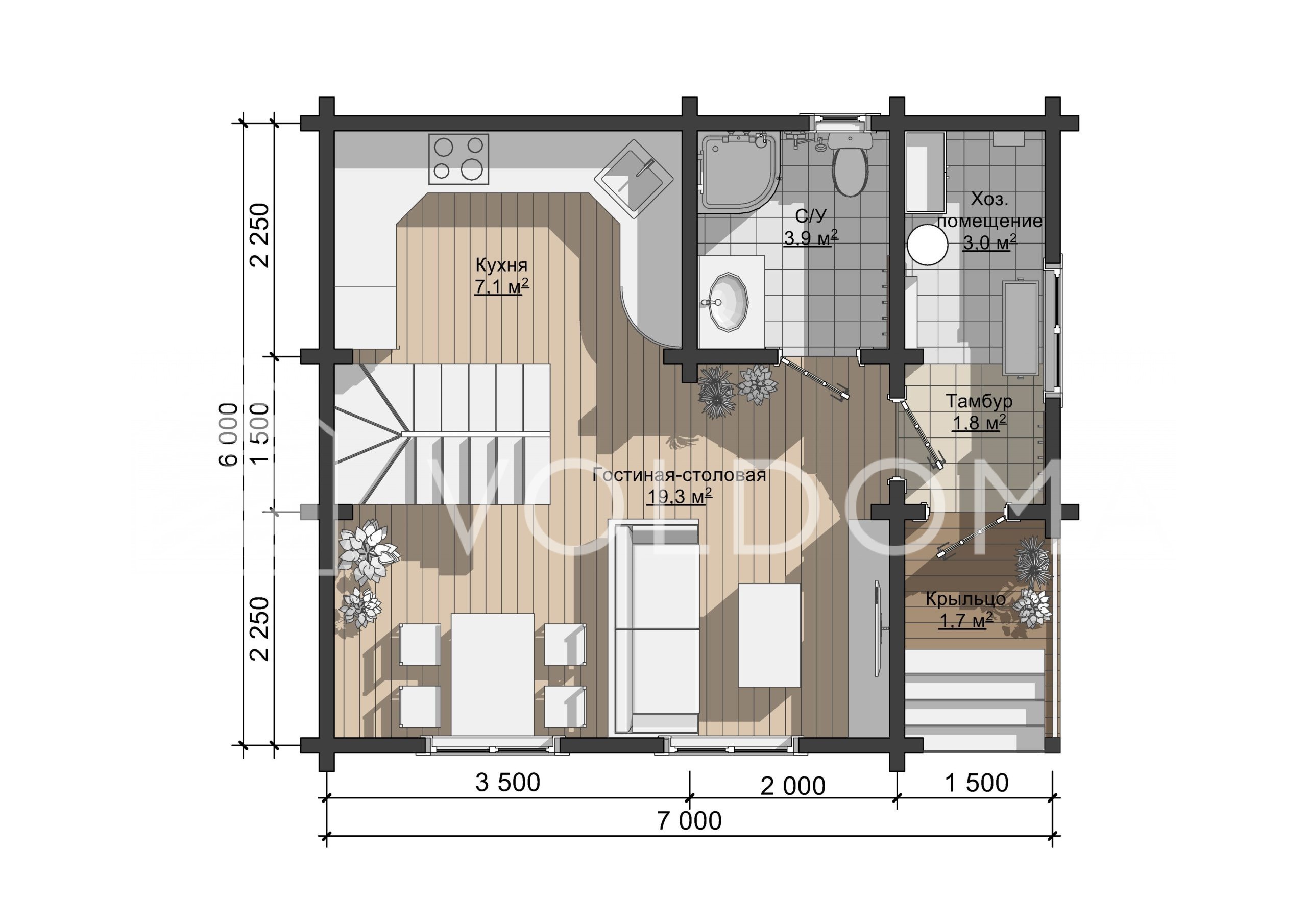 - Общая площадь: 59 м2