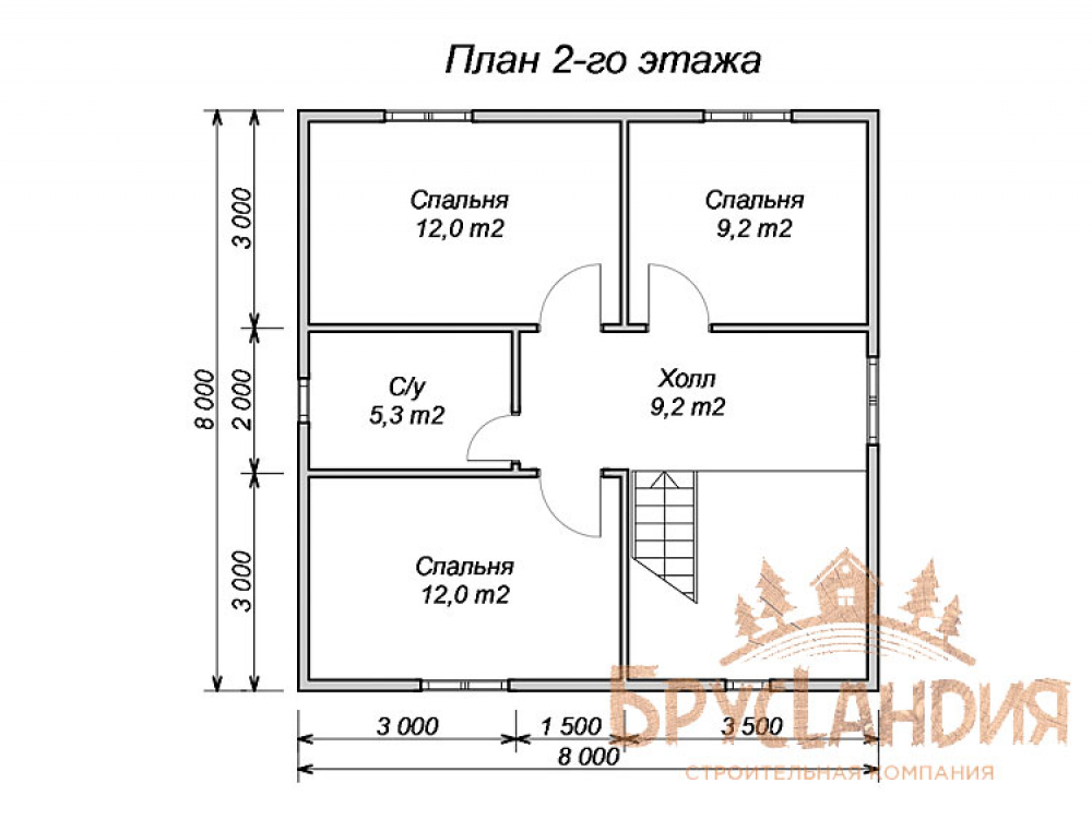 Проект двухэтажного дома БД-43 Коттедж из бруса 8х8 м