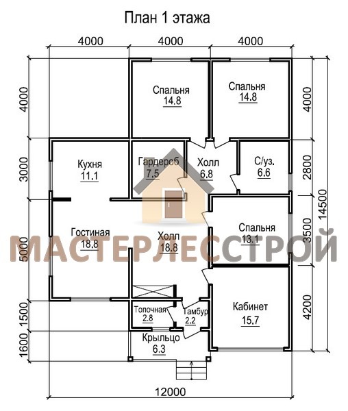 - Тип кровли: Дома с четырехскатной крышей (вальмовой)