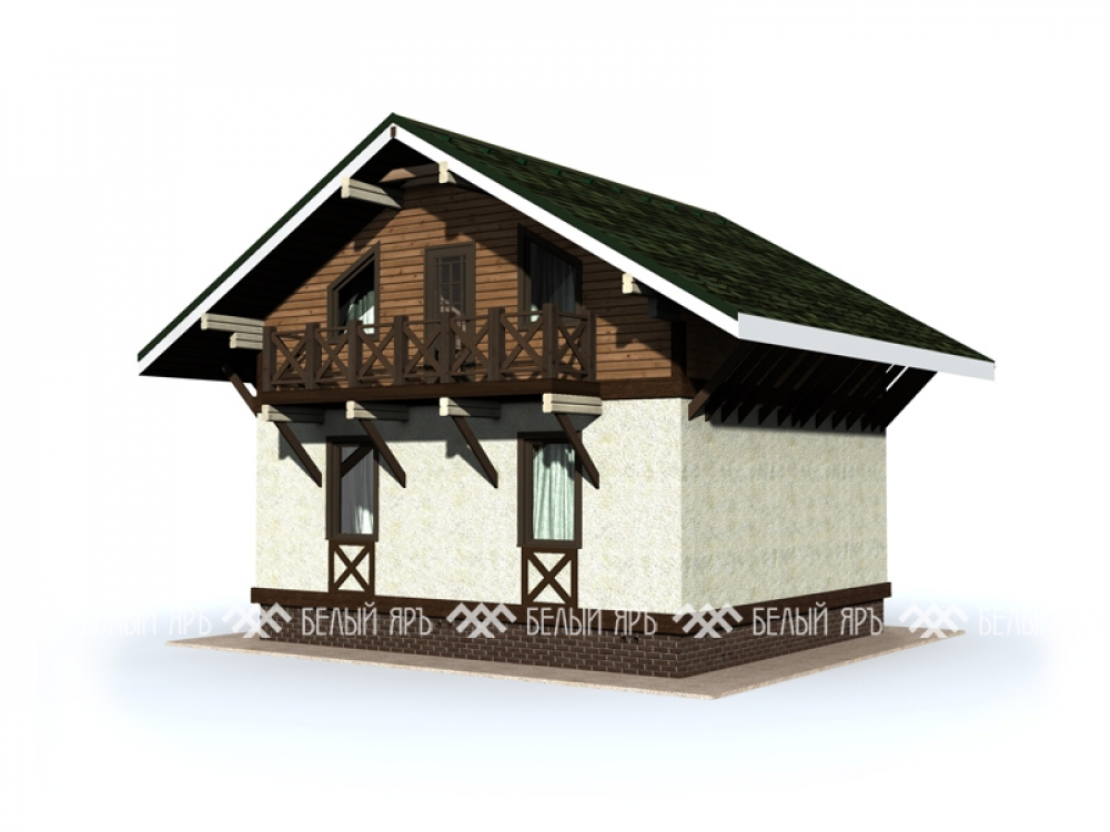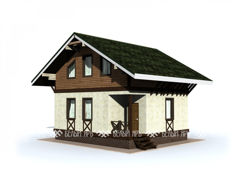 Проект двухэтажного дома Дом 6х8 м с мансардной крышей и кухней-гостиной