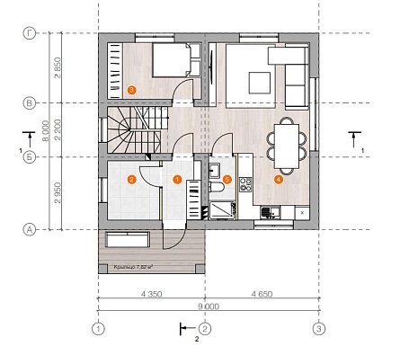 - Тип кровли: Дома с четырехскатной крышей (вальмовой)