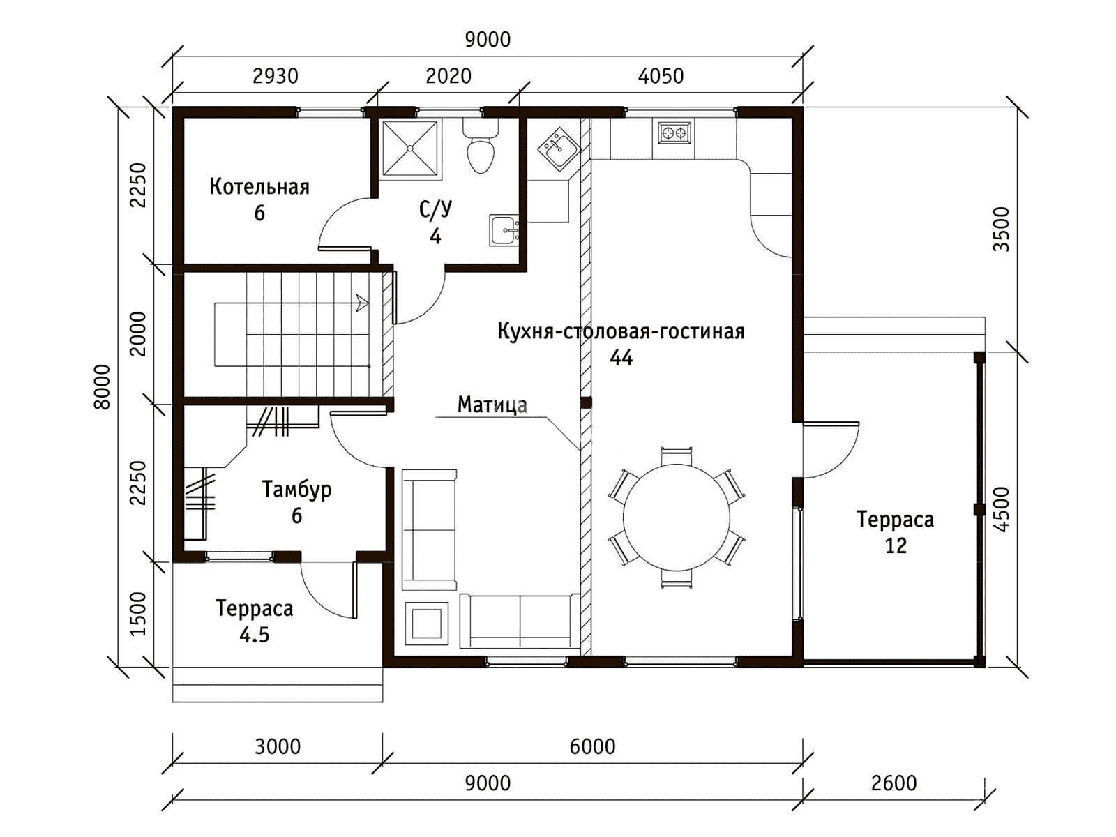 - Перегородки: Стойки 50×100 мм.