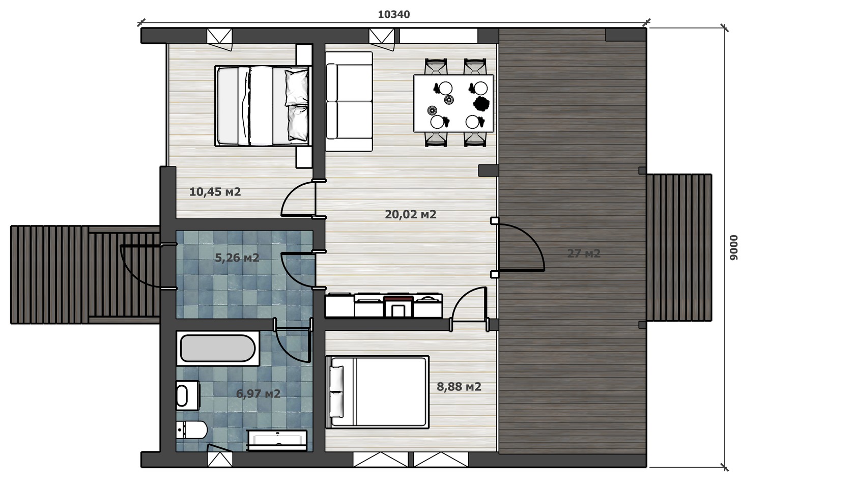 - Общая площадь: 51 м2