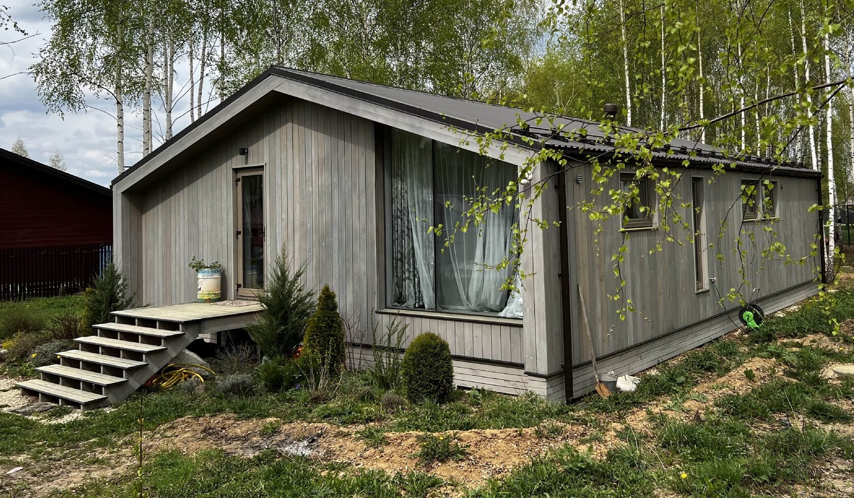 - Наружные стены из вертикальной сухой строганной доски хвойных пород с покраской в 2 слоя