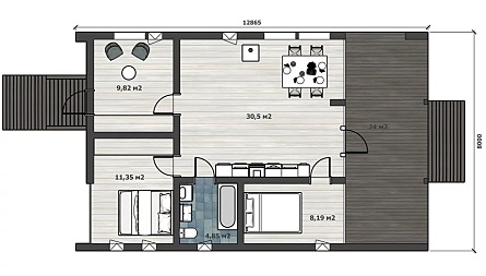 Компактный дом площадью 65 м² в стиле барнхаус создан для небольшой семьи, ценящей уют и практичность. 50 м² жилого пространства организованы с заботой о комфорте, создавая атмосферу домашнего тепла. Брус в отделке стен наполняет интерьер природной энергетикой, а лаконичный дизайн делает пространство понятным и удобным. Это место, где простота сочетается с семейным уютом.Характеристики