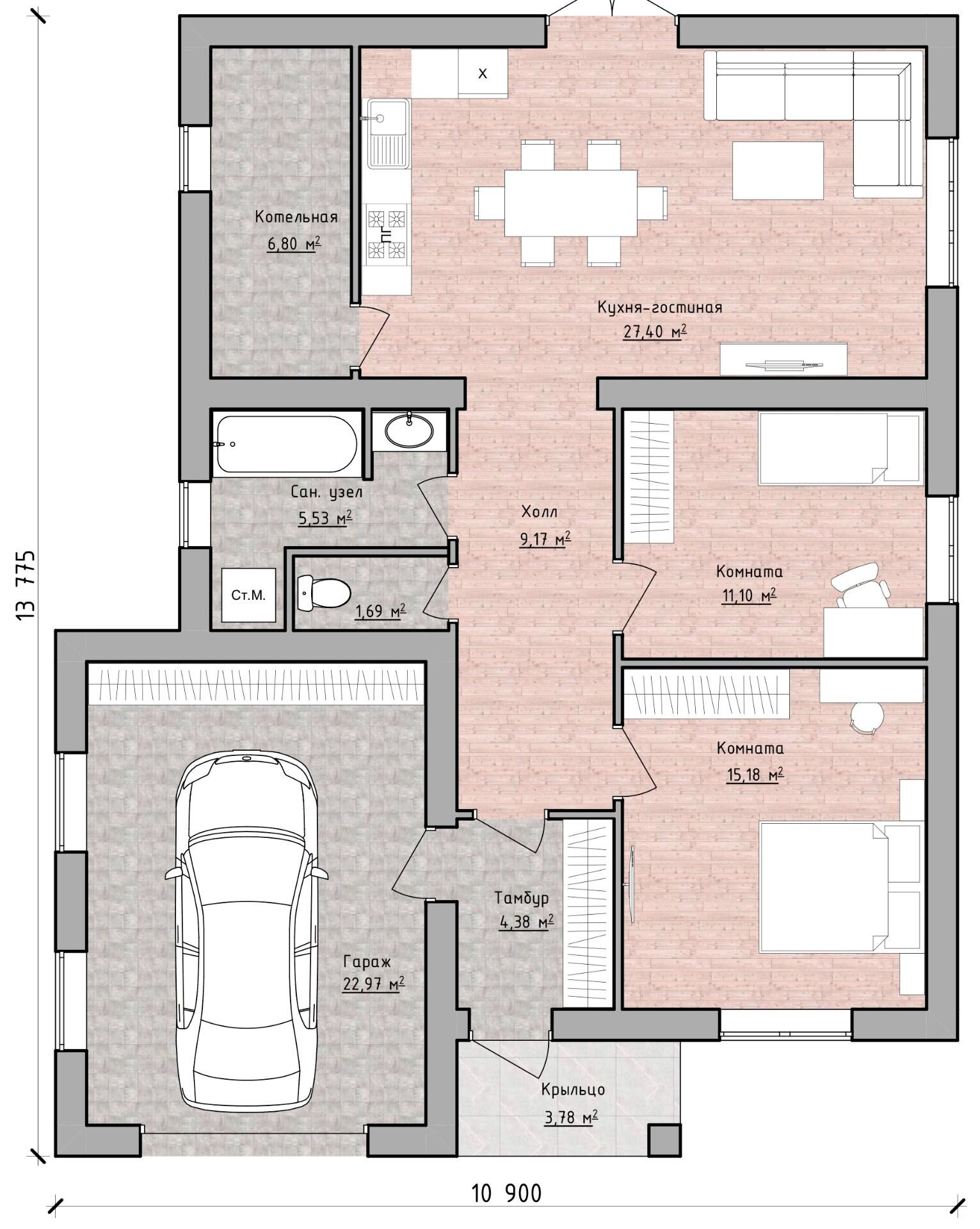 Дом площадью 108 м² с жилой зоной 86 м² предлагает комфорт и простор для небольшой семьи. Две спальни и один санузел создают уютное пространство, а газобетонные стены дарят тепло и тишину. Встроенный гараж добавляет практичности, делая жизнь здесь еще удобнее. Это дом, где каждая деталь продумана для вашего комфорта.Характеристики