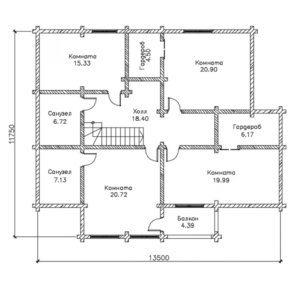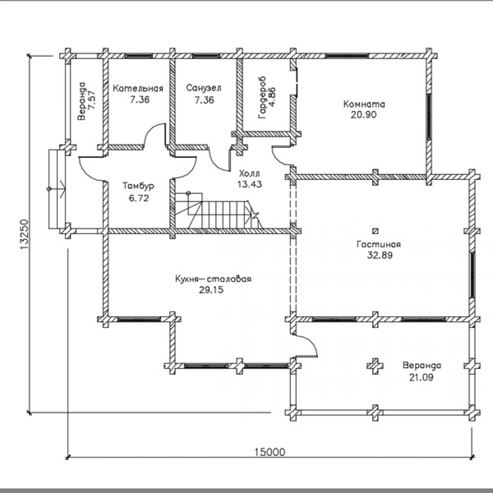 Проект двухэтажного дома Брус 15-82