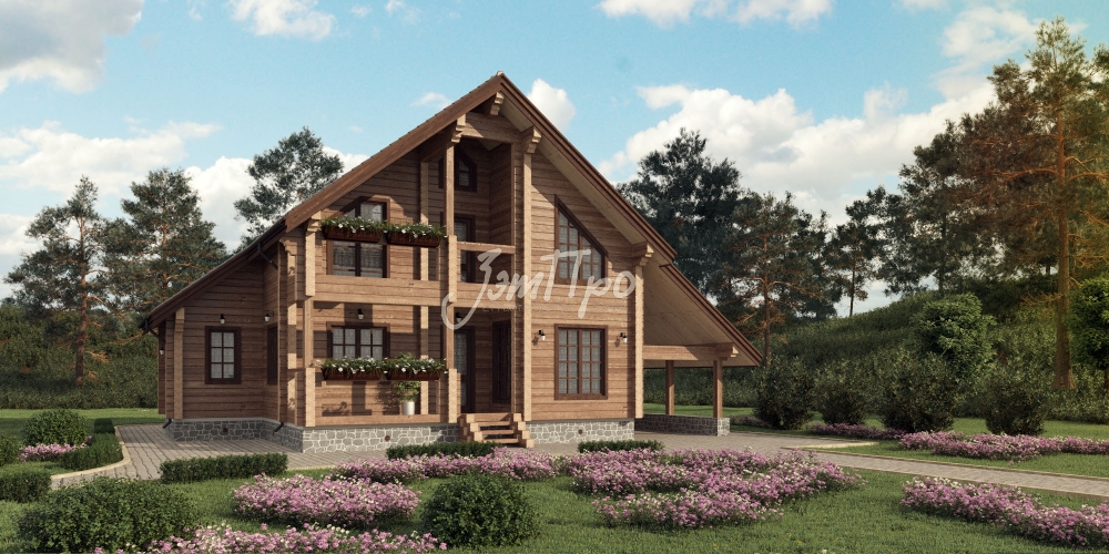 Проект двухэтажного дома Дом из клееного бруса с террасой и балконом. Проект Светово.