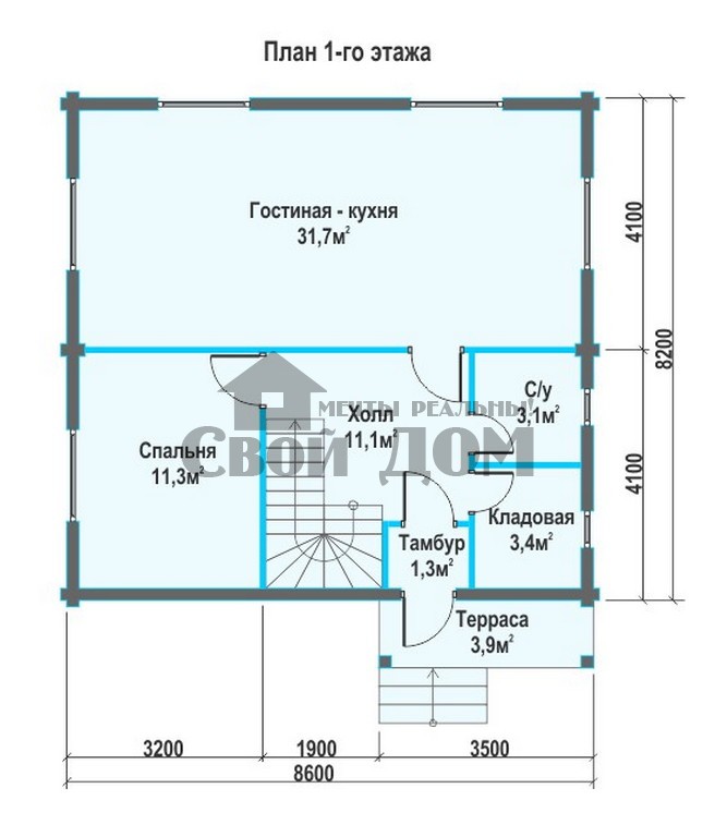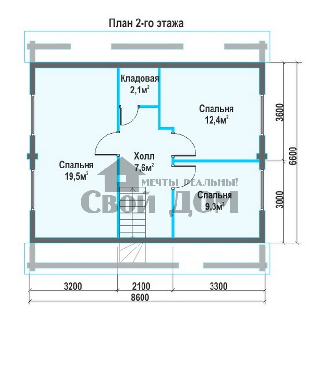 Проект двухэтажного дома Брус-6. Дом из бруса 8,2*8,6 м