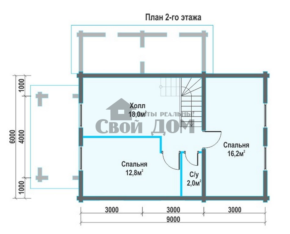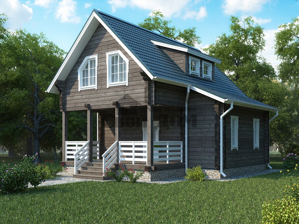 Проект двухэтажного дома Брус-7. Дом из бруса 8*11 м