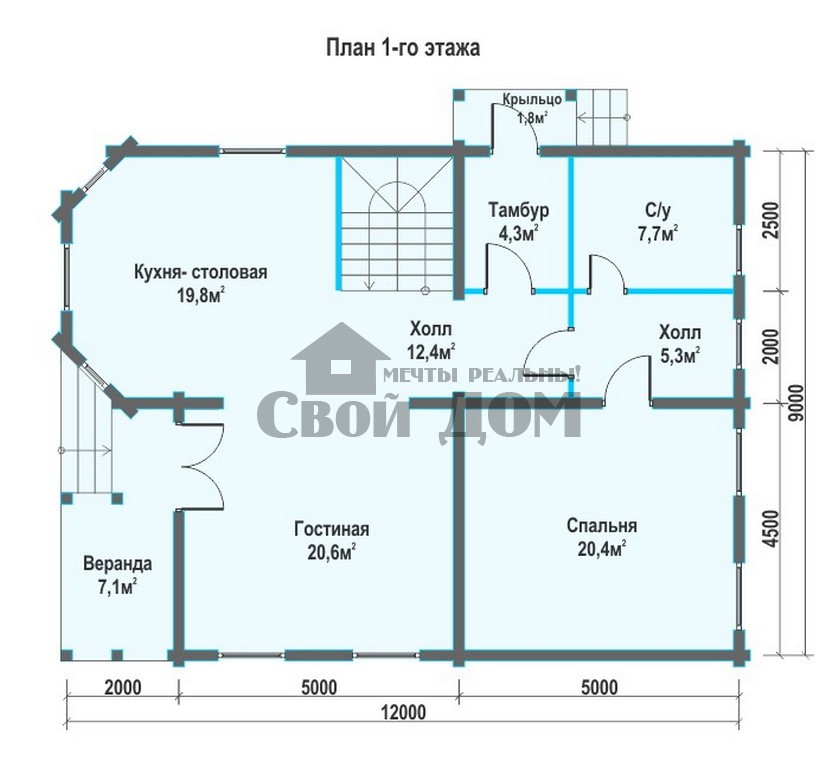 Проект двухэтажного дома Брус-8. Дом из бруса 10*12 м