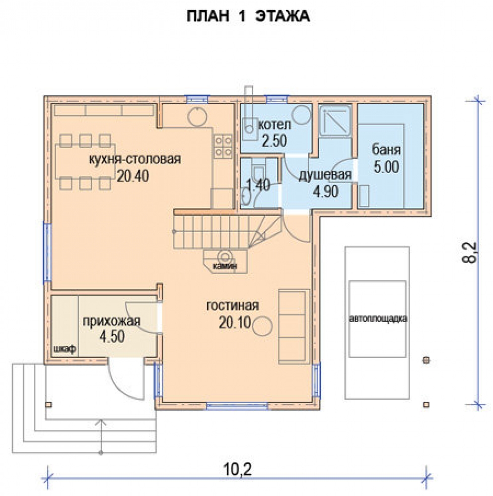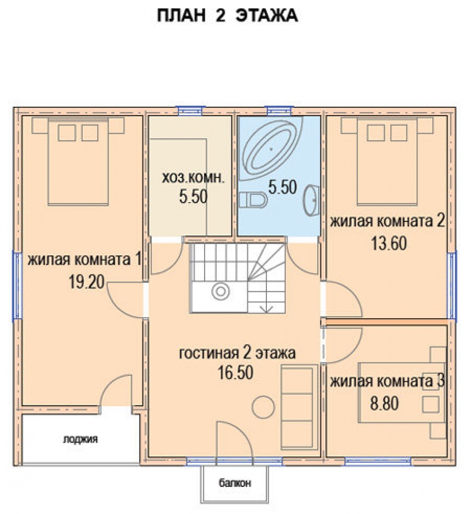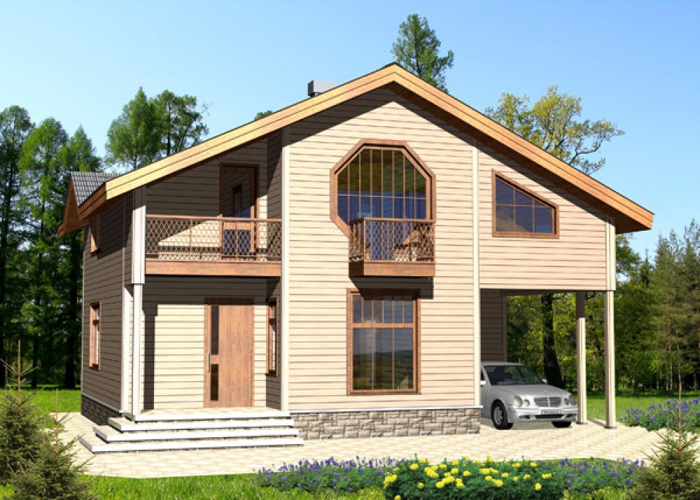 Проект двухэтажного дома Брусовой дом 8х10 с навесом | ДМ-16