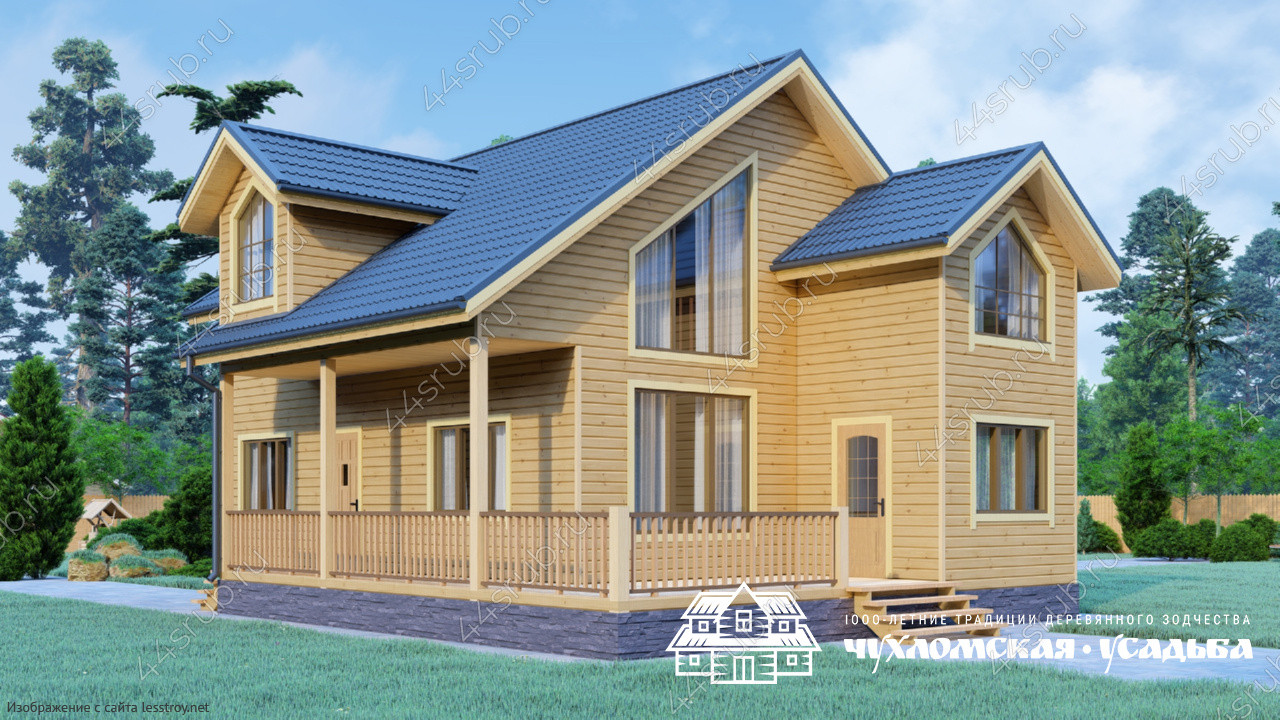 Проект двухэтажного дома Брусовой дом со вторым светом и террасой по проекту Венеция