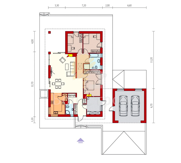 Уютный дом из газобетона площадью 201 м² подойдет для семьи с двумя детьми. Жилая зона 120 м² обустроена с заботой о комфорте, а металлочерепица придает кровле стильный вид. Три спальни и два санузла создают уютную атмосферу для повседневной жизни. Простота и надежность здесь сочетаются с домашним теплом.Характеристики