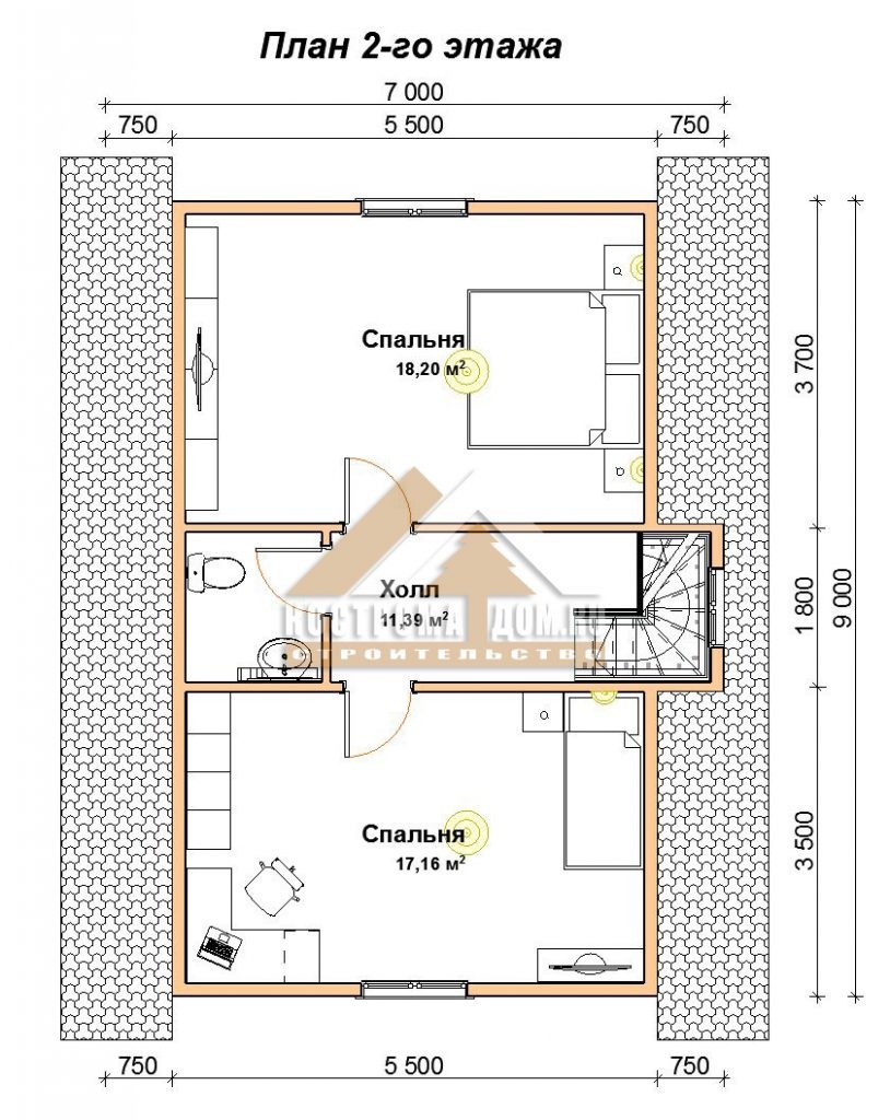 - Материал внутренних стен дома 2-го этажа: Каркасно-щитовые (в стоимость строительства не входят)