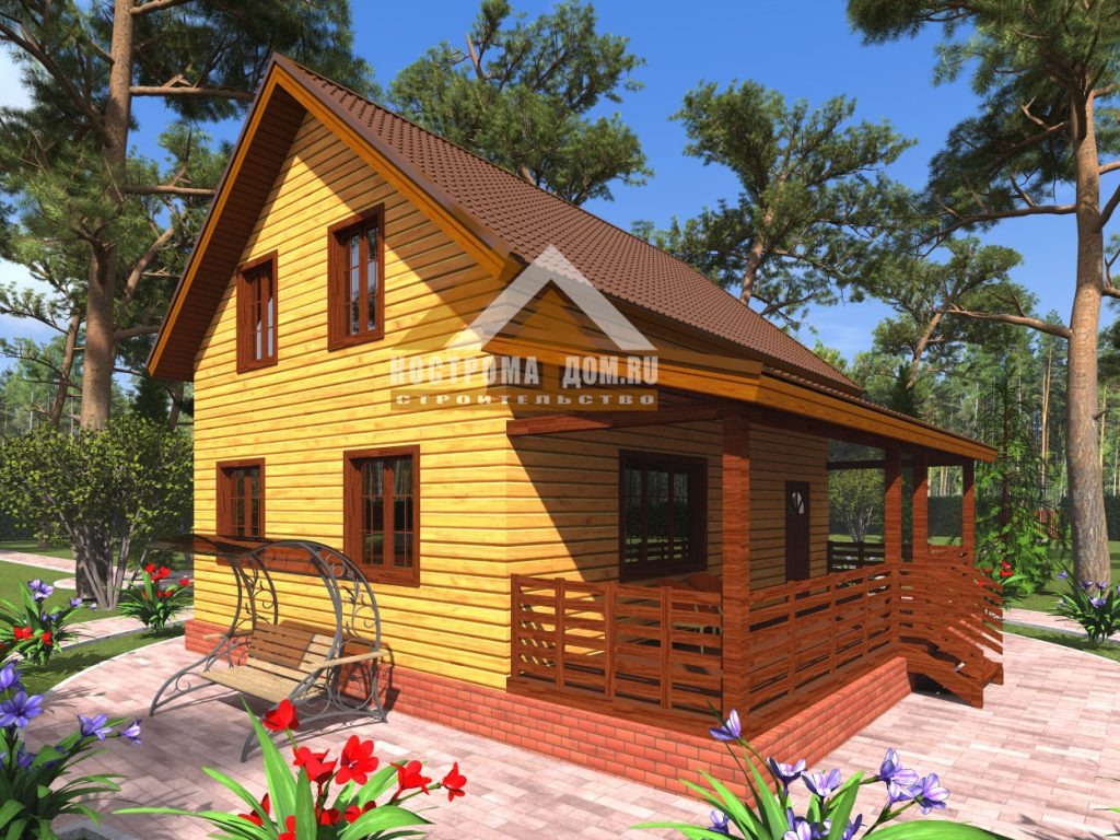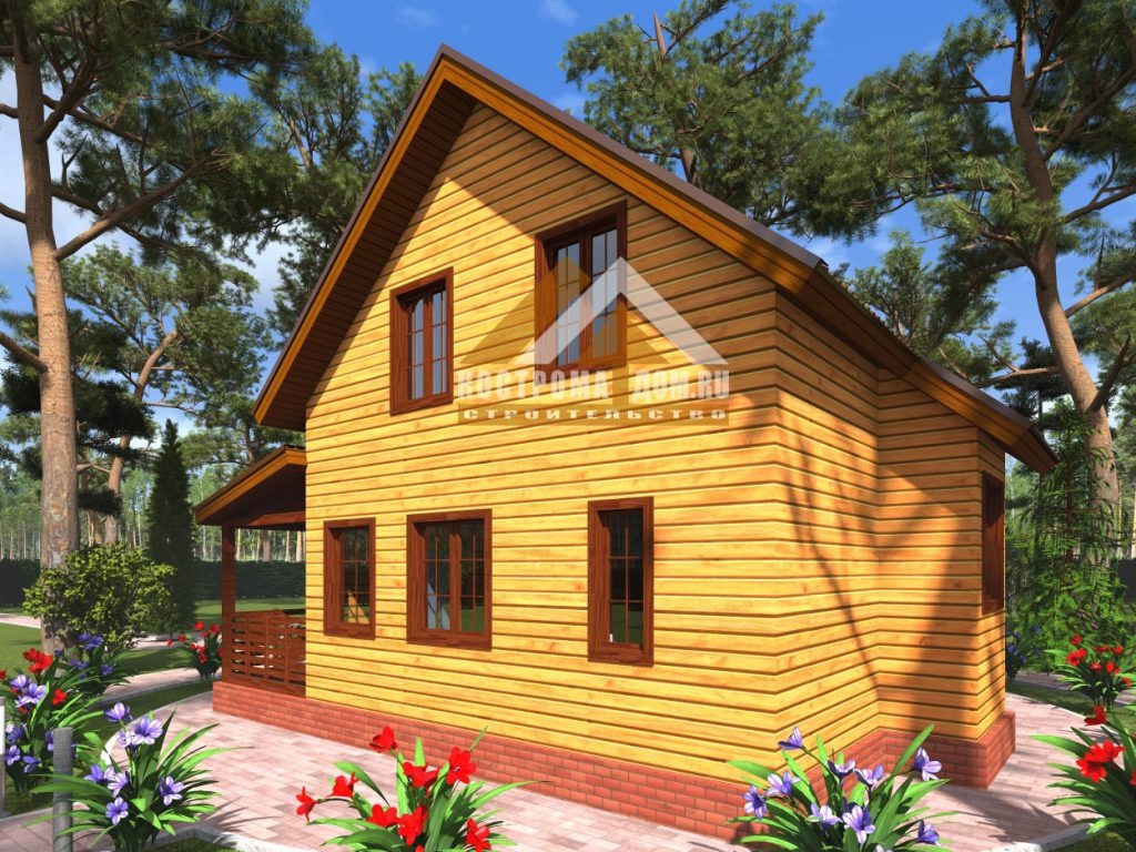 - Фронтоны крыши: Обрезной брус 150х150 мм