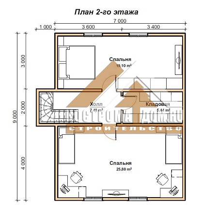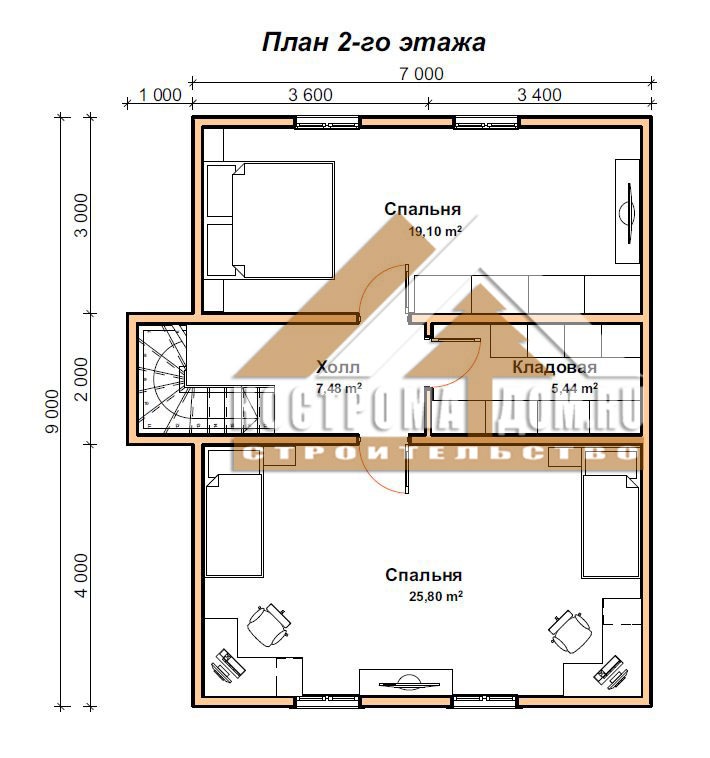- Материал внутренних стен дома 2-го этажа: Обрезной брус 100х150 мм