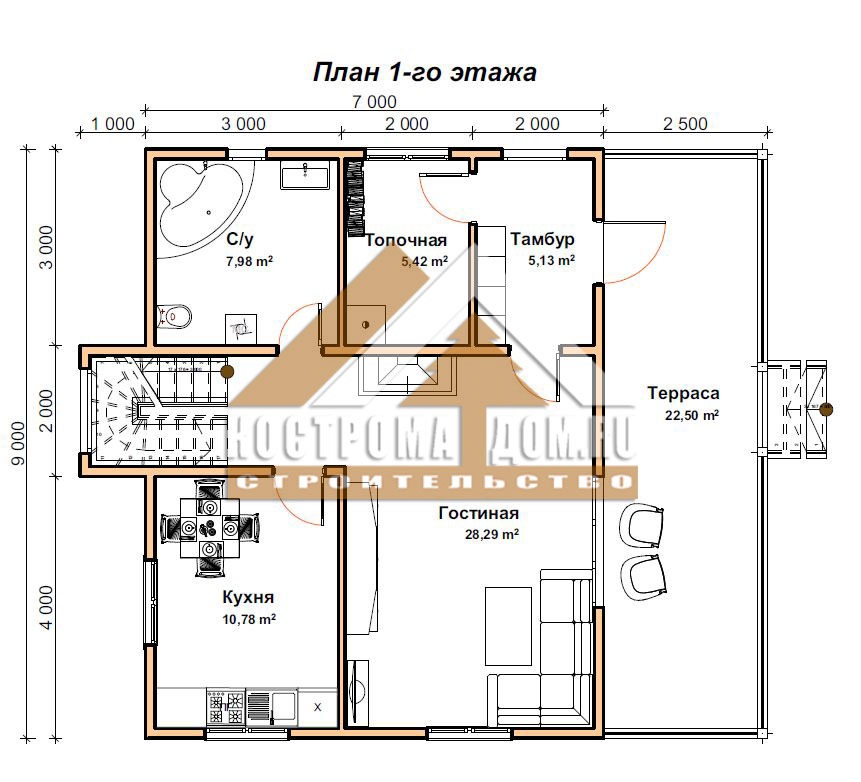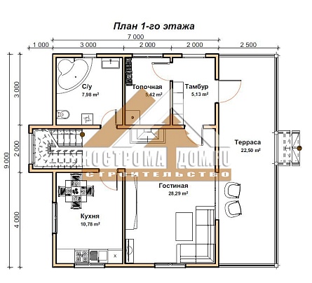 - Материал внутренних стен дома 1-го этажа: Обрезной брус 100х150 мм