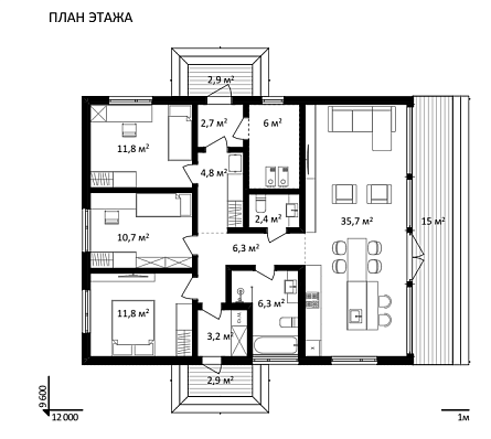 Проект одноэтажного дома CLT'DOM 122