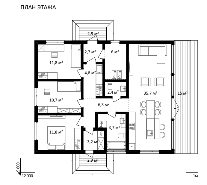 Проект одноэтажного дома Сканди 140
