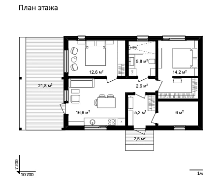 Проект одноэтажного дома CLT'DOM 87