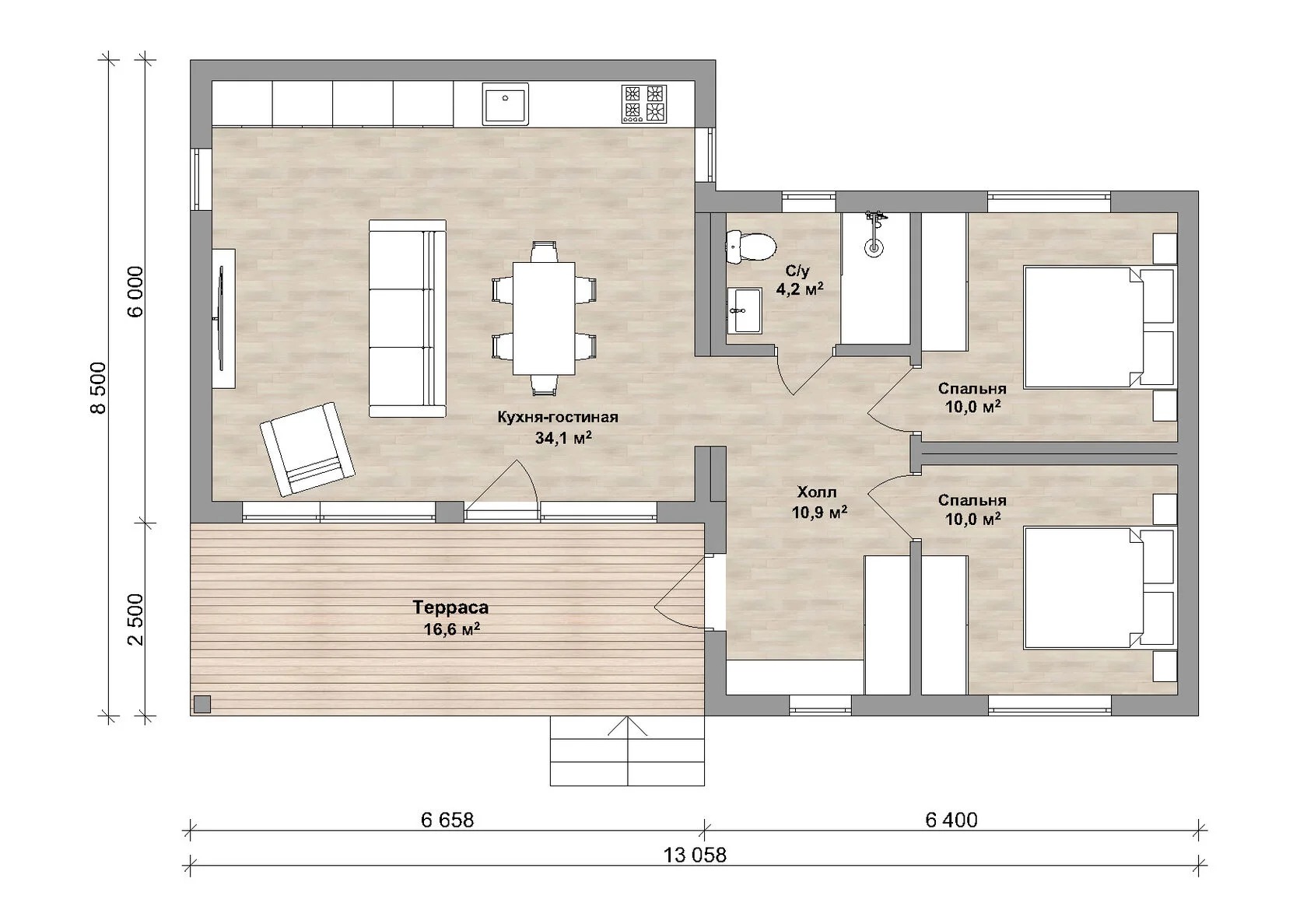 Современный модульный дом площадью 85 м² с плоской крышей создан для тех, кто ценит функциональность и комфорт. 71 м² жилой зоны организованы с заботой о каждом метре, создавая атмосферу защищенности и покоя. Мембранная кровля обеспечивает надежность, а продуманные детали интерьера делают пространство живым и уютным. Это место, где современные решения служат созданию удобного жилья.Характеристики