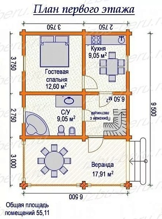 - Общая площадь: 100 м2