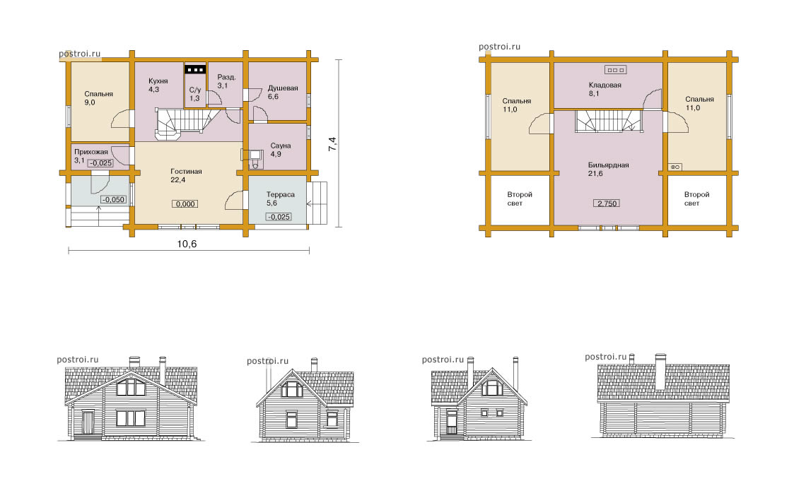- Наружные стены - оцилиндрованное бревно ∅220 мм