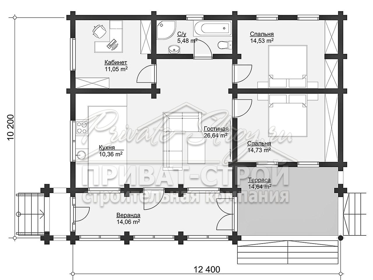 Проект одноэтажного дома Проект одноэтажного дома из клееного бруса Пятый угол -115