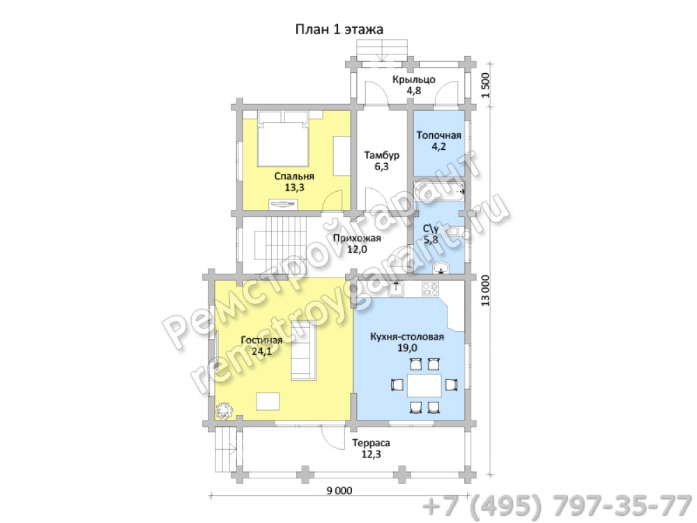 Дом, где можно плакать от умиления, глядя на люк. Дом предлагает 184 м² рационально организованного интерьера. Это одноэтажная структура, которая разделяет приватные и общественные зоны. Стены из бревна хорошо держат тепло и защищают от шума. В качестве кровли использована рубероид — материал, проверенный временем.Характеристики