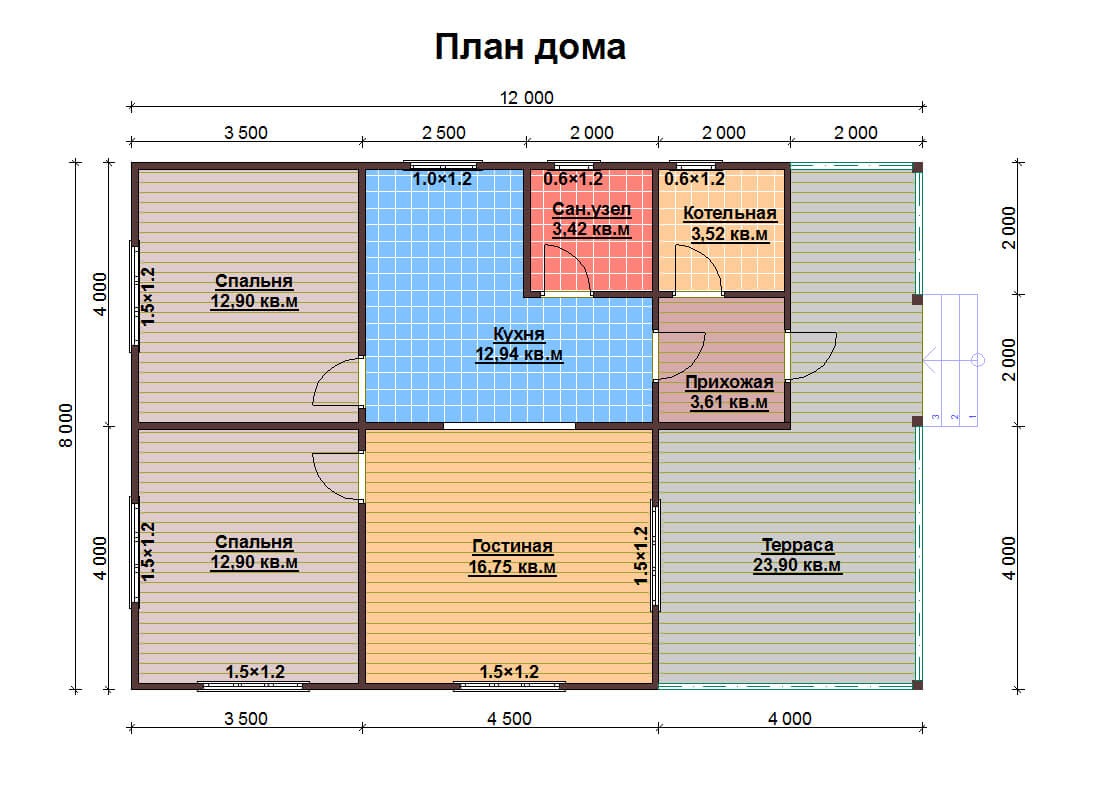 - Основание дома выполняется из бруса 150х150мм в два ряда