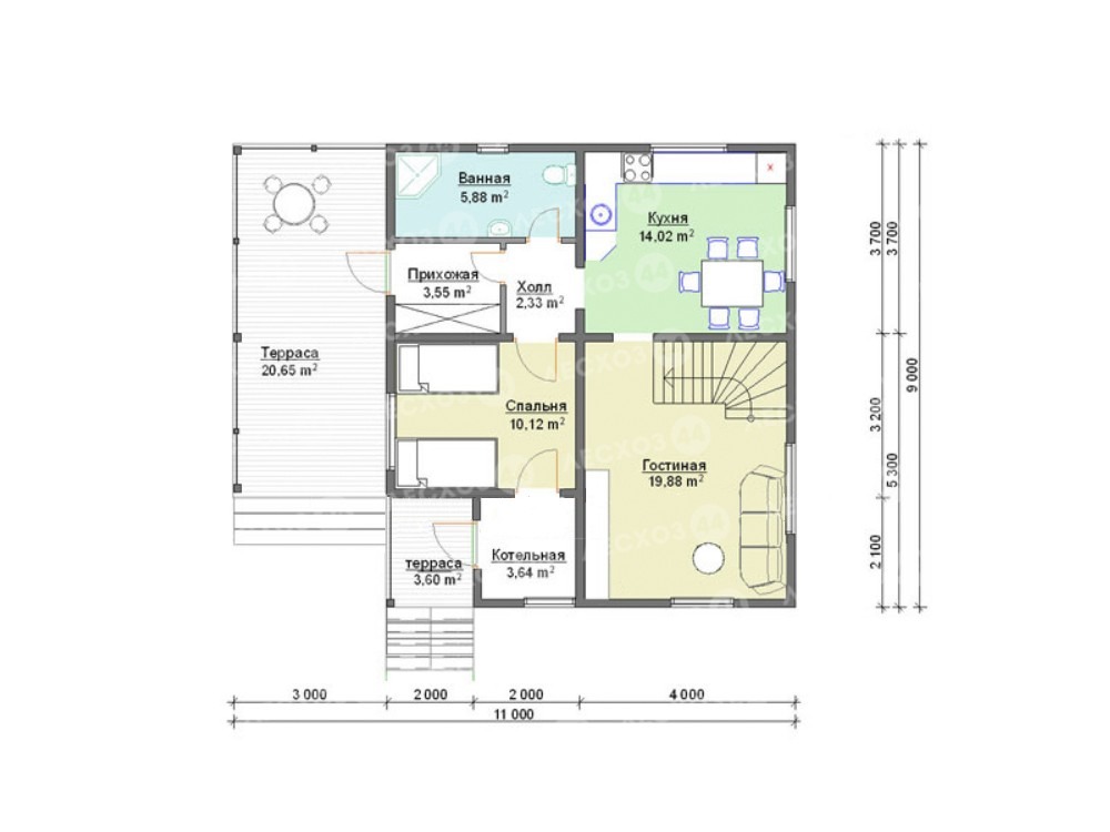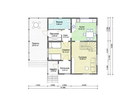 - Внутренние перегородки 1-го этажа - брус ест. влажности 100х150 мм.