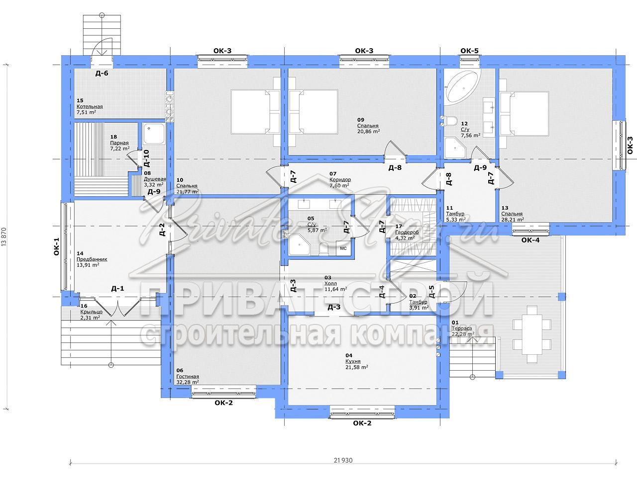 Проект одноэтажного дома Д-230-1ПБ