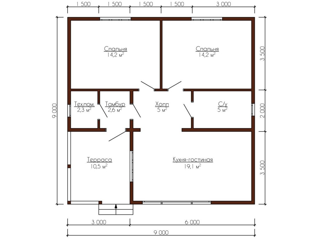 - Межкомнатные перегородки выполняются из строганного профилированного бруса сечением 140×140 мм, с двух сторон «Прямой».