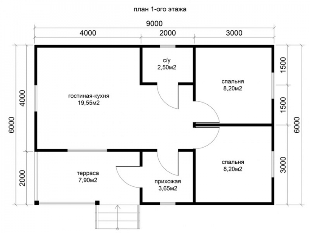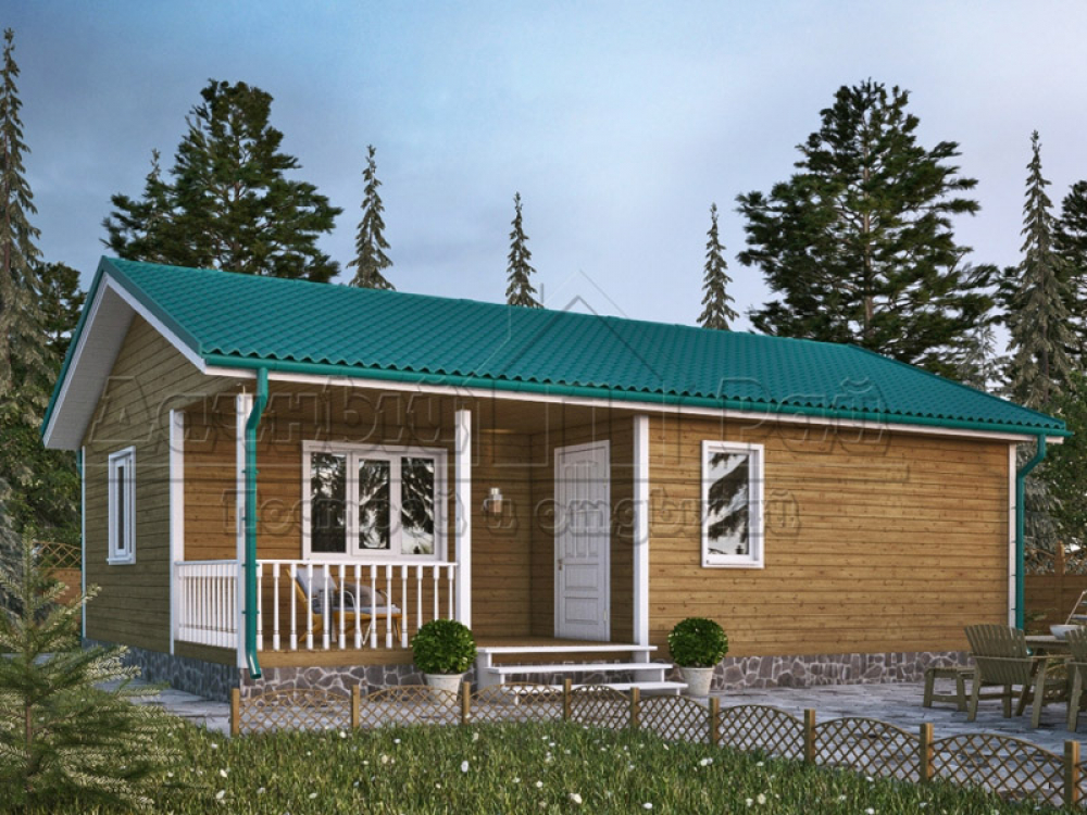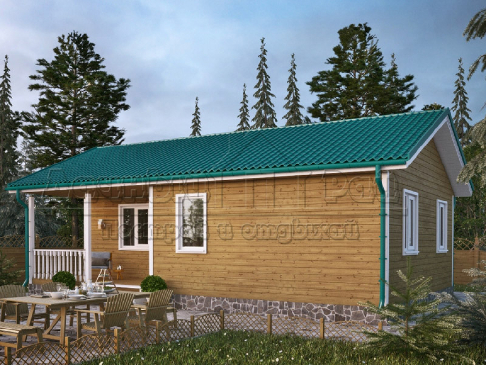 Проект одноэтажного дома Д-45 дом из бруса 6,0х9,0м с террасой