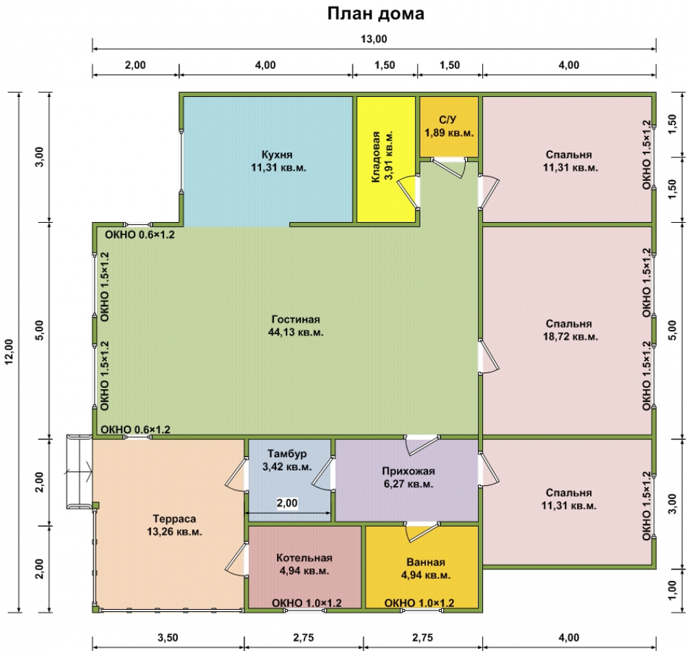 Проект одноэтажного дома Одноэтажный деревянный дом по проекту 60ПБ