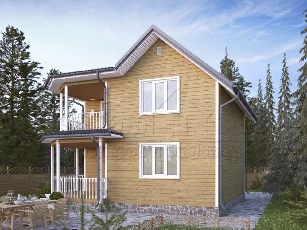 Проект двухэтажного дома Д-83 дом из бруса 7,5х8,0м с террасой и балконом