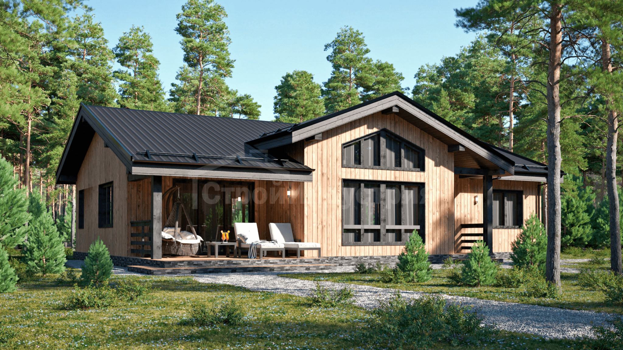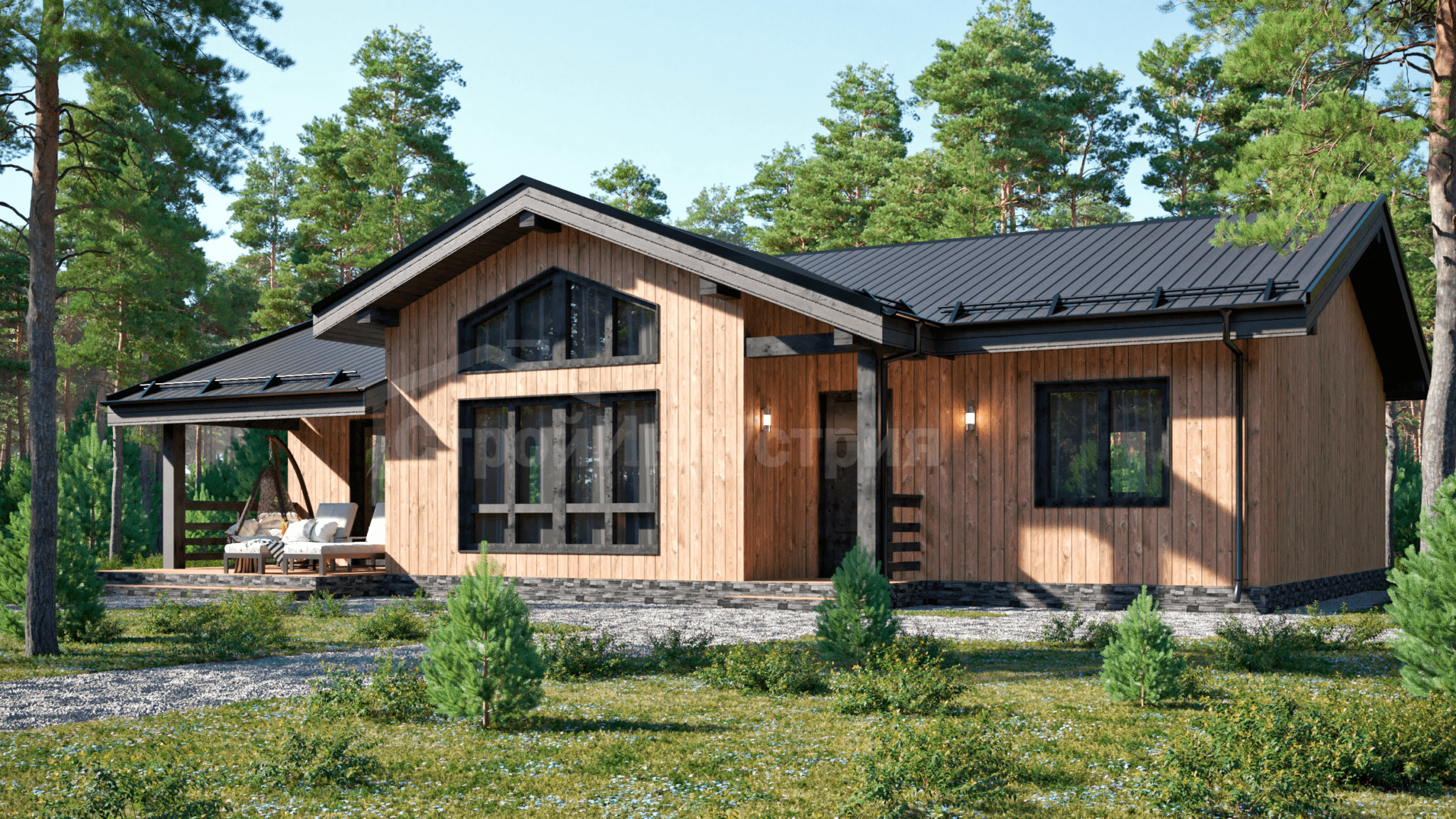 - Стены: имитация бруса/виниловый сайдинг