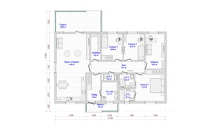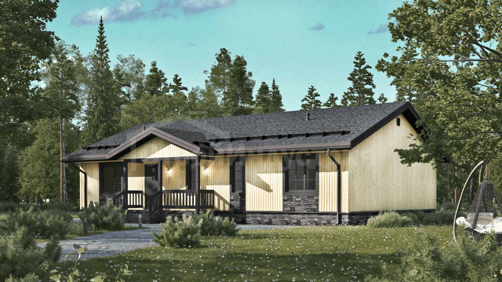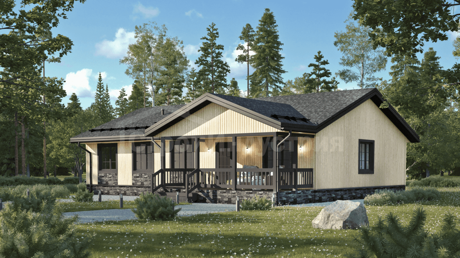 Проект одноэтажного дома Изумруд, под ключ, ламинат, двери Экошпон, отделка Hauberk, коммуникации, сантехника.