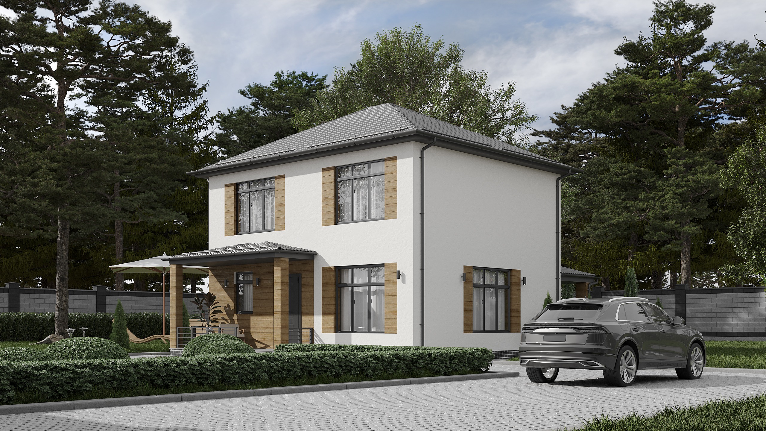 - Отделка фасада: Дома с отделкой штукатуркой
