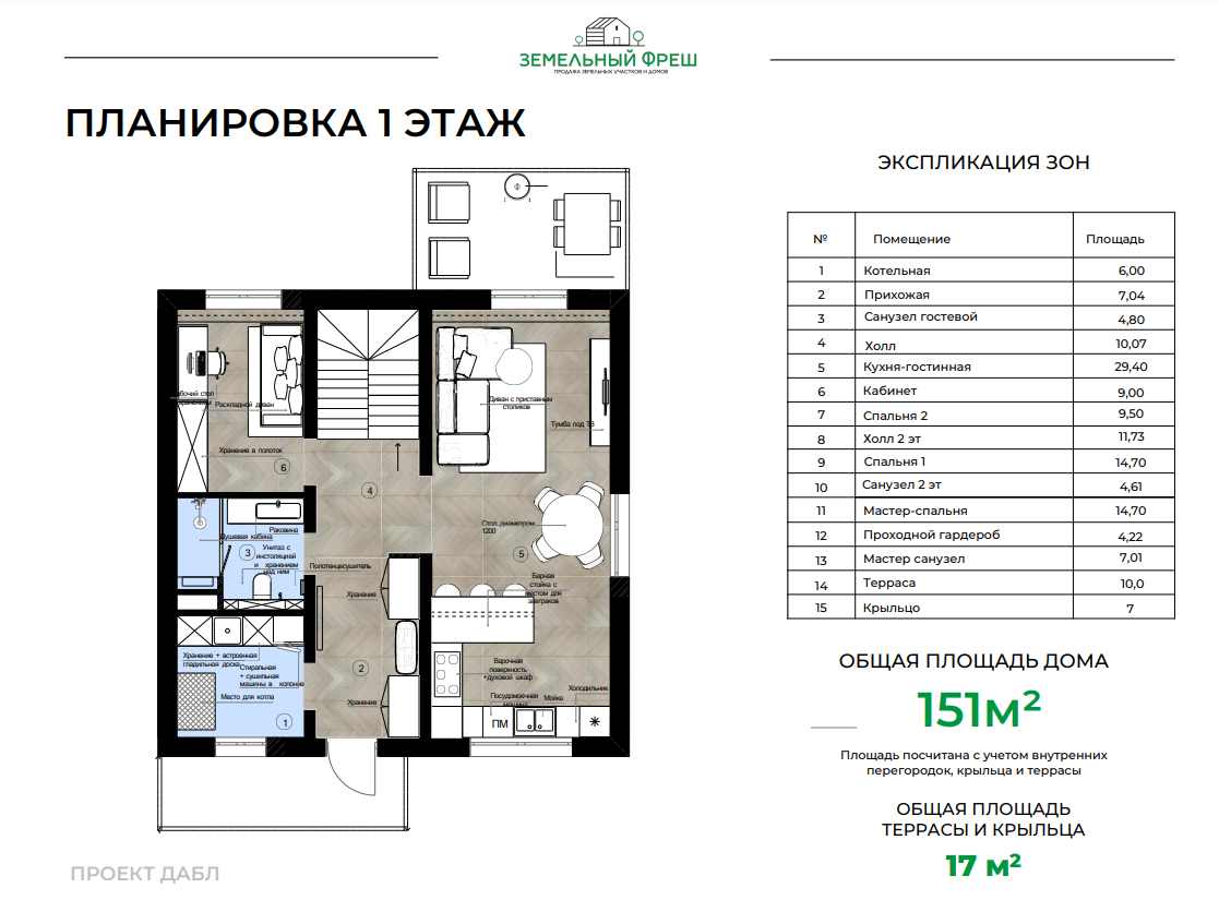 - Общая площадь: 151 м2