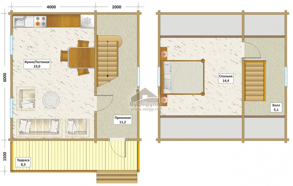 Проект двухэтажного дома Дача 64 кв.м