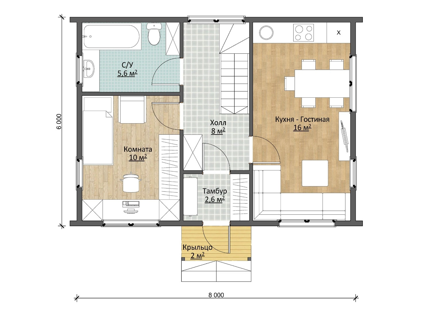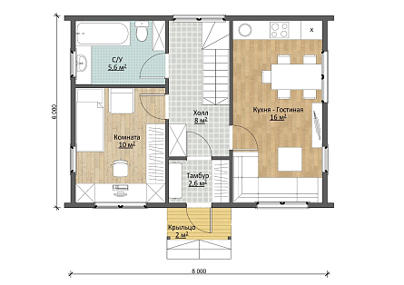 Проект двухэтажного дома Дачник 6х8 Барн