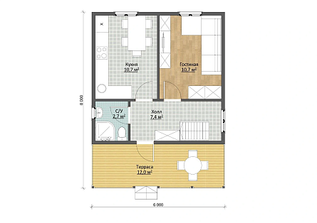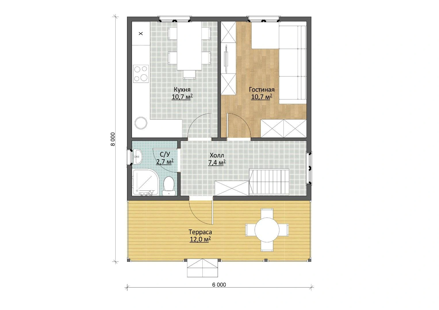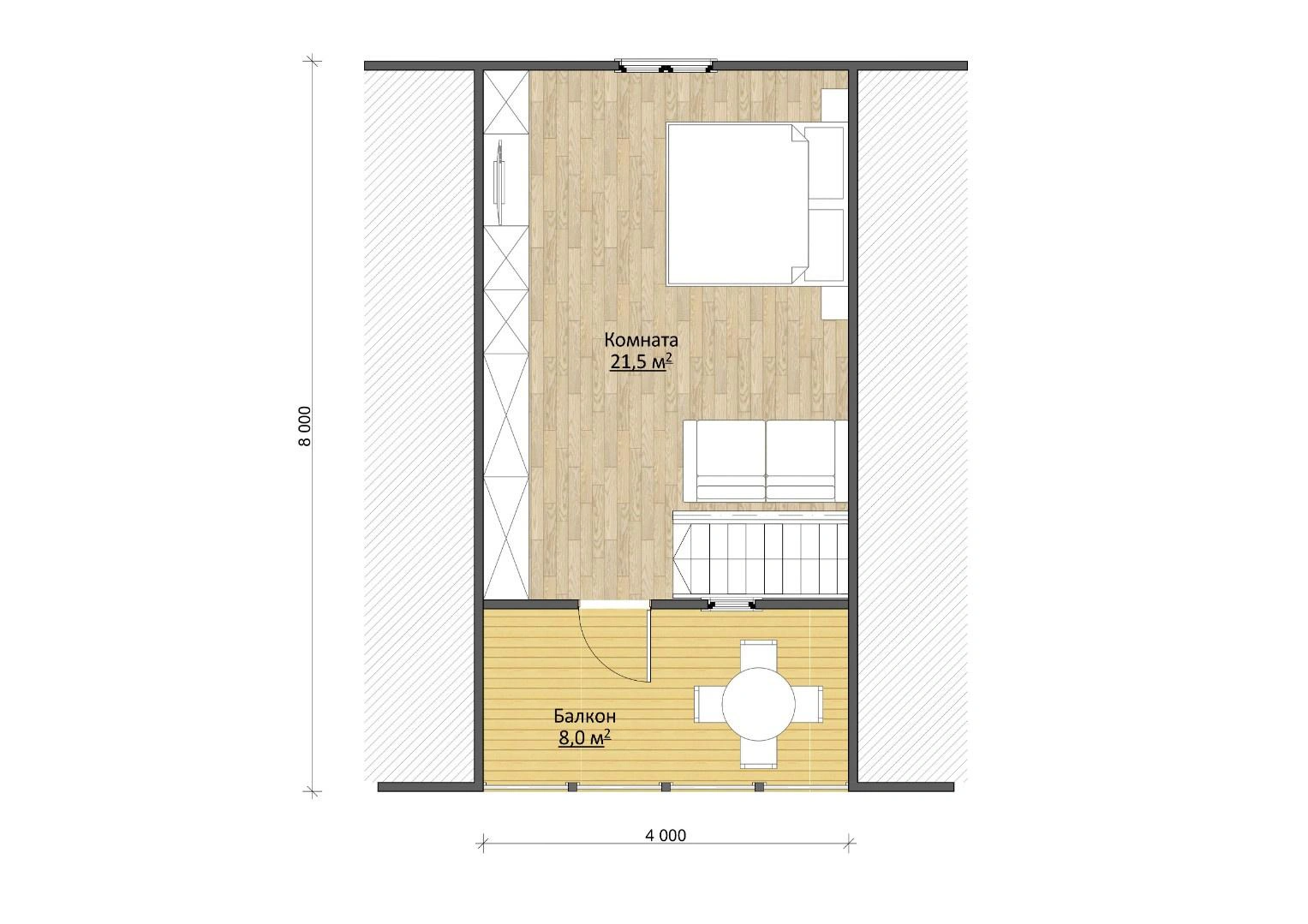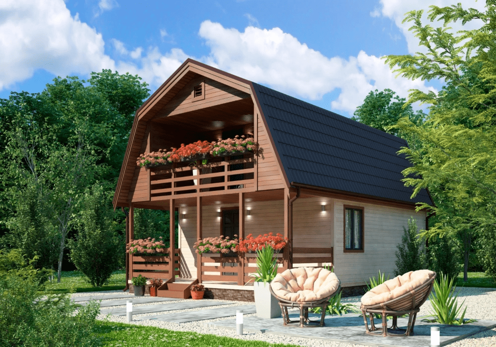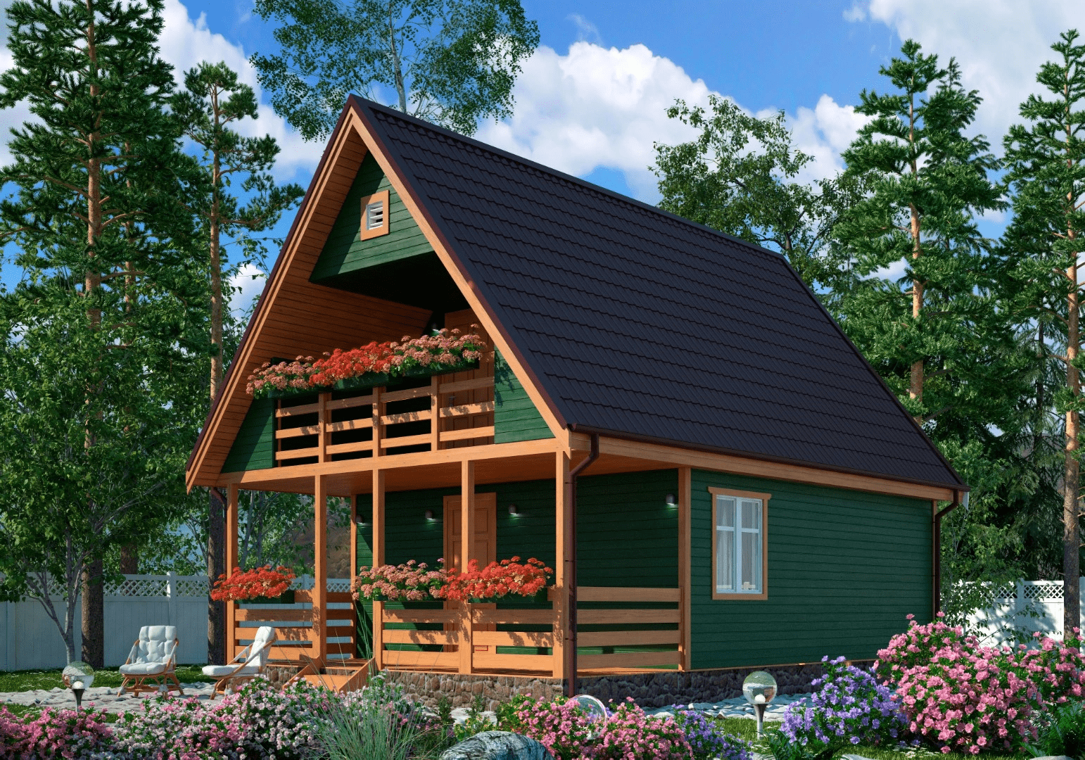 Проект двухэтажного дома Дачник 6x8 с террасой и балконом