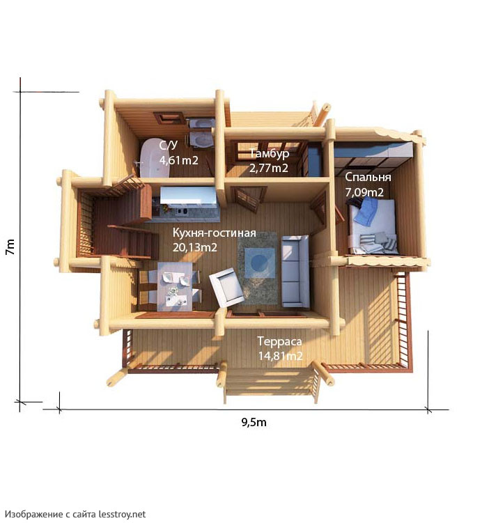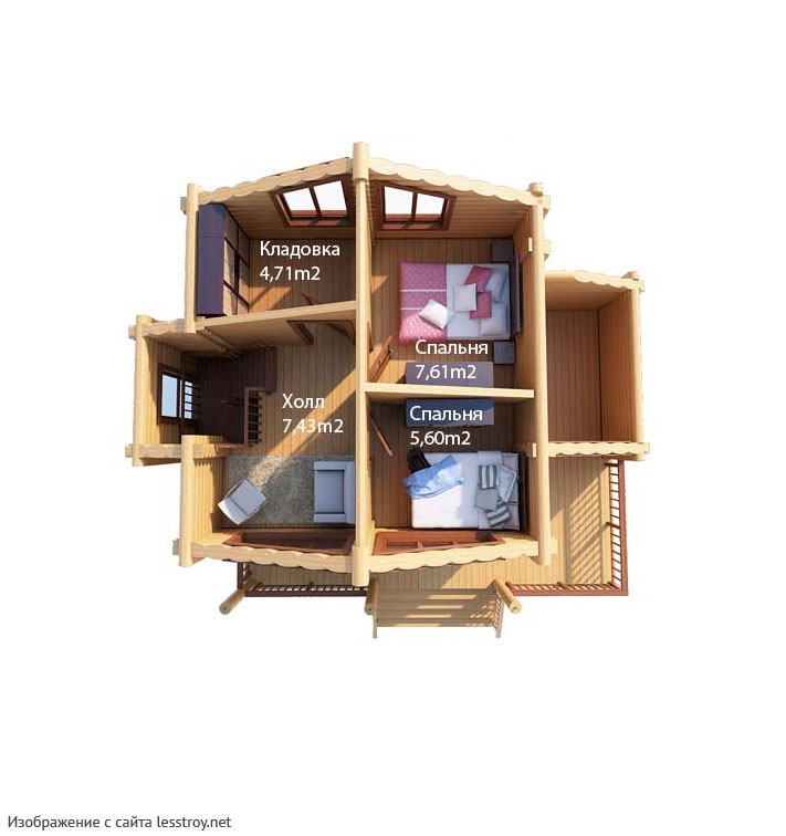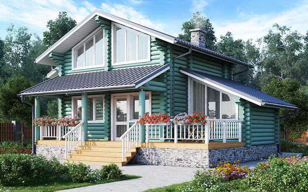 Проект двухэтажного дома Дом 6х7 из оцилиндрованного бревна ДБ-14