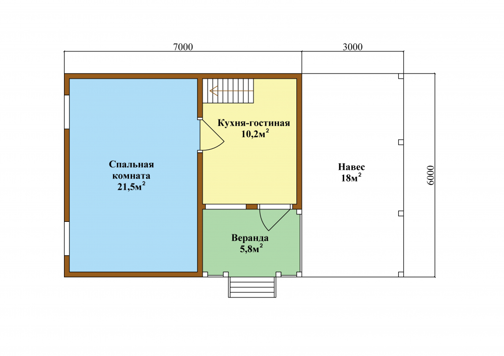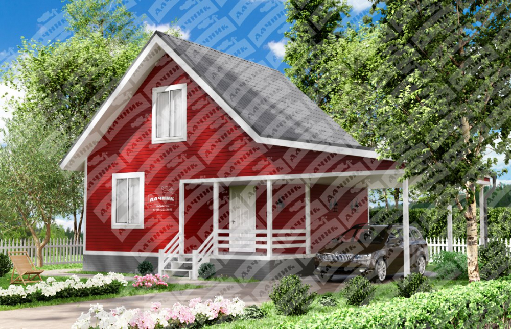 Проект двухэтажного дома Дачный дом 7*6 м с навесом под машину (ДД18)